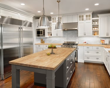 -Butcher block countertops in Maple, Walnut, Hevea and Acacia.